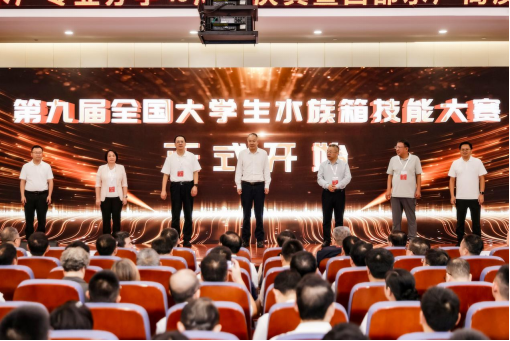 在全体嘉宾的共同见证下,西南大学党委常委、副校长葛信勇,河南师范大学党委常委、副校长、教育部高等学校水产类教学指导委员会委员聂国兴,教育部高等学校国家级实验教学示范中心联席会植物/动物/农林/水产学科组秘书长李滨,以及教育部高等学校水产类教学指导委员会委员乔秀亭教授、苏胜齐教授,第九届全国大学生水族箱造景技能大赛组委会委员杨奇慧教授、何文平教授一同为本届大赛揭幕。