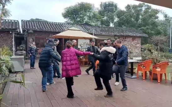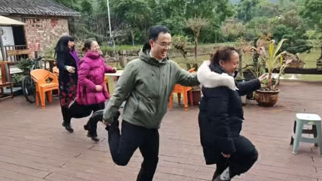 活动中,教职工们在风景宜人的田园小院中共进午餐,畅叙友情,气氛轻松愉快。午餐后,大家跳起了欢快的锅庄舞,用热情的舞步传递新年的喜悦与祝福,现场笑声不断,其乐融融。随后,活动进入了游戏环节。“奔腾列车”游戏中,各小组齐心协力、步调一致,展现出默契的团队协作精神;“双龙顶珠”环节则趣味横生,参赛者们默契配合、你追我赶,将活动气氛推向高潮。两个小游戏不仅增添了欢乐,也进一步拉近了彼此的距离。