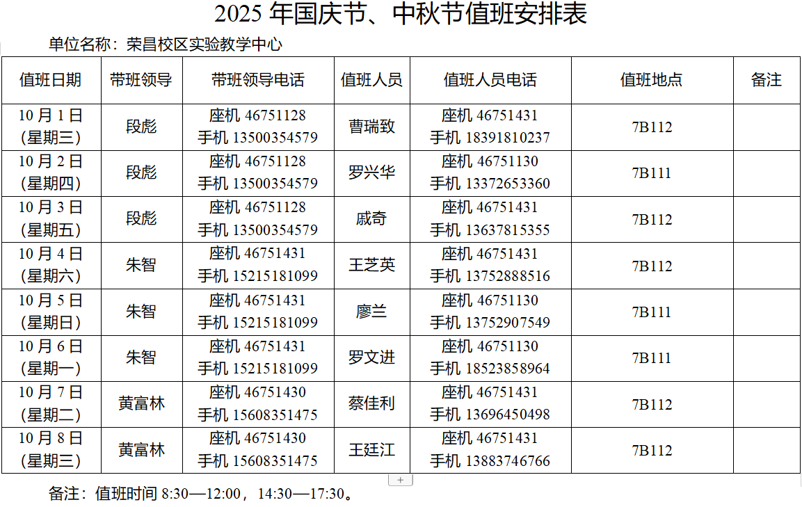 值班时间:上午8:30—12:00,下午14:30—17:30